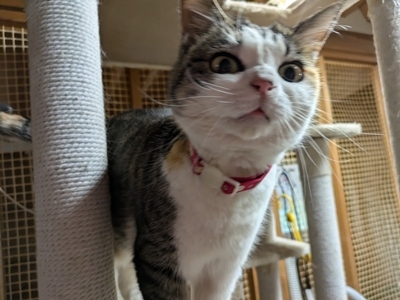 | 里親募集する理由 | 秩父郡小鹿野町にて多頭崩壊現場から引き取りました。 飼い主が4年前くらいに不妊手術をされたそうです。 あまりに人慣れしていて、呼ぶと飛んで来るので、シェルター猫ではもったいないと里親募集する事にしました。 |