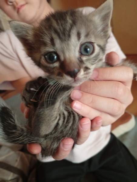 | 里親募集する理由 | 前回募集しましたが、応募がなかったため、なんとか育てました。今は目が開きよちよち歩きます。 まだミルクですが、もうすぐウェットフードなどに興味を持つと思います。 |