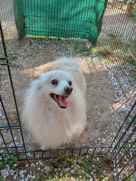 | 特徴(性格など) | 8キロ超えの大きなポメラニアンです。 ちょっとした柴犬サイズで、ホワイトに近いクリームです。 とても人懐こく、ずっと後をついてきます。 明るく楽しい子ですが、食事前は騒ぎます。 室内トイレや散歩はトレーニングが必要です。 留守番、就寝中はケージで大人しくしています。 他の子とも仲良くできます。 快食快便、毎日元気に走り回っています。 保護犬ですので、過度に健康問題を気にされる方はご遠慮ください。 |