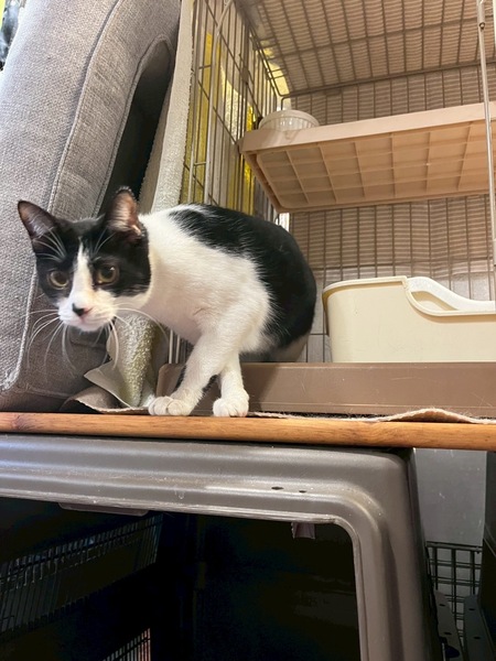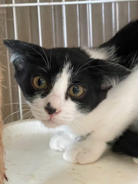| 特徴(性格など) | ウィ!ちゃん 2024春生まれの女の子です。 不妊手術済み エイズ白血病ともに陰性。 人馴れは今ひとつですが爪切りやお顔拭きなどのケアはさせてくれます。 預かり宅では人間に強めのパンチや甘噛みをかましたりしつつ、リラックスして過ごせています。ツンデレです。 猫風邪の名残で涙目になりやすいので現在は2日おきに点眼しています。 どんどん人馴れしてきているので、引き継いでくださる方募集です。 |