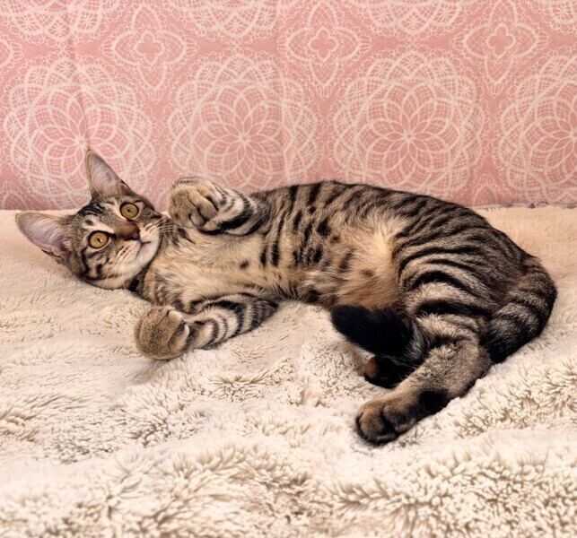 | 特徴(性格など) | 【仮名】ジェリーちゃん 【性格】今年イチオシのジェリーちゃん♪ お顔も可愛くってスタイル抜群でシッポ長くて 何より抱っこが大好きというレアキャラ(笑) 毎日タテ抱っこをせがんで足に抱きついてきます♪ 逢えば分かるイチオシっぷりです(笑) おもちゃ遊びも大好きで もってこい遊びも得意技なんです♪ 仲良しのテツくんととても仲良しです! 一緒のお迎えをおススメします! ※1ピキ譲渡応相談 |
