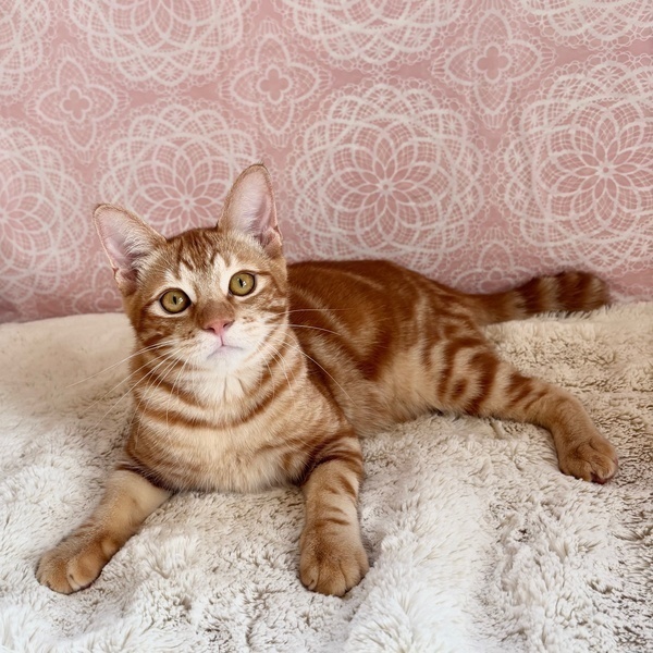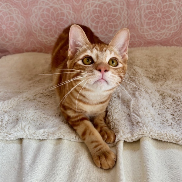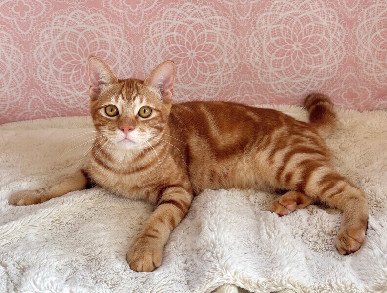 | 特徴(性格など) | 【仮名】テツくん 【性格】アメショ柄しょってるテツくん♪ けっこうかまってちゃんな男の子です。 オヤツのオネダリの声は元気いっぱい! お膝に乗って抱っこして欲しい時は 足元に来てしおらしくアピール♥ 胸元に顔をつけてアイコンタクトしてきます。 たまらなくカワイイですヨ! 沢山甘やかしてあげてください♥ 一緒に過ごしているジェリーちゃんと とっても仲良しですよ♪ ※1ピキ譲渡応相談 |
