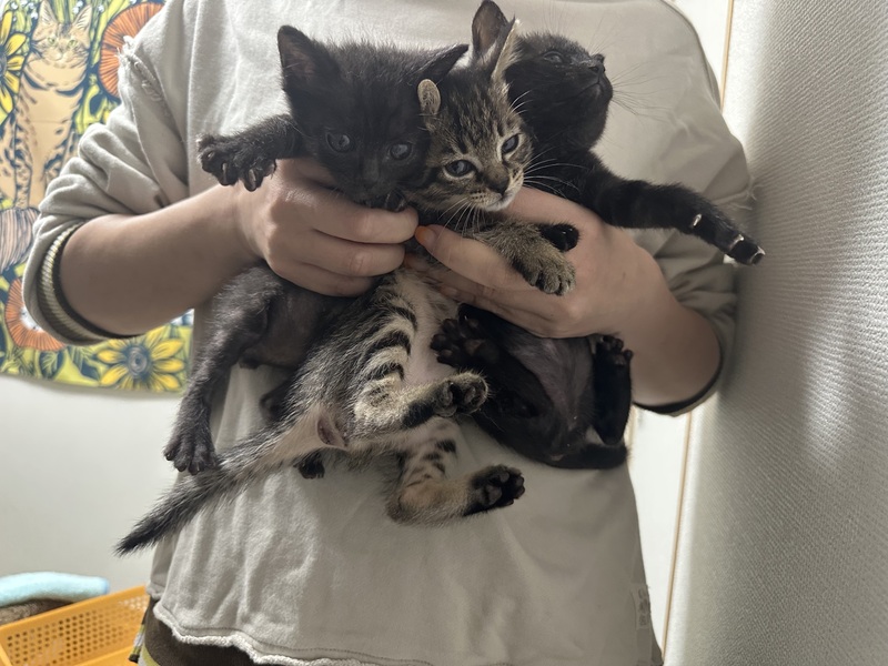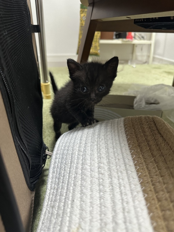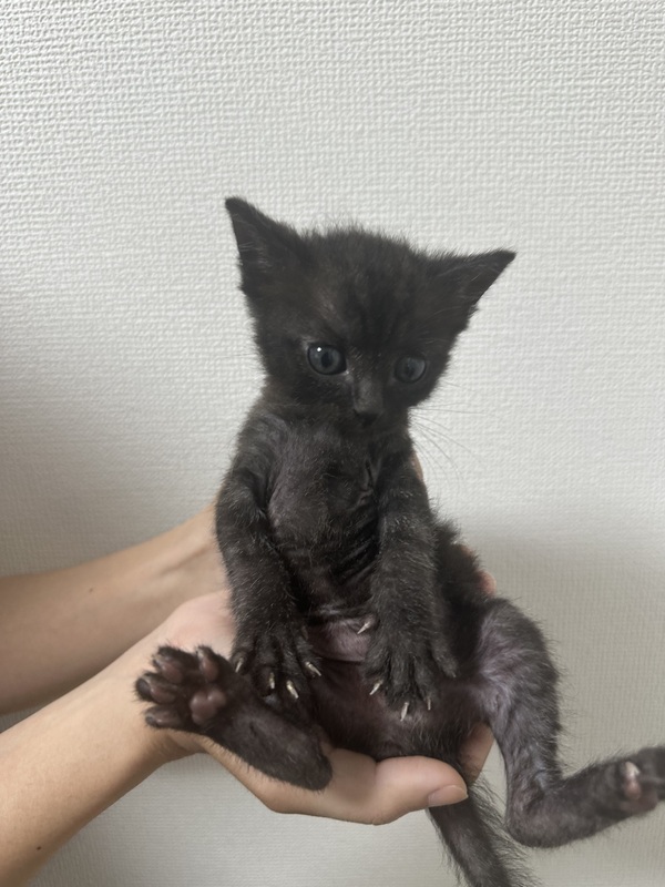 | 特徴(性格など) | 黒に若干のトラ模様が見えるがおそらく黒 6兄弟の中でいちばん小さいながらも 離乳食に切り替えてからの爆食ぶり。 どんどん体重を増やしていっております。 1番小さいながらも、1番大きな兄弟に挑んでいったり、 何にでも興味を示して進んでいきます。 |
