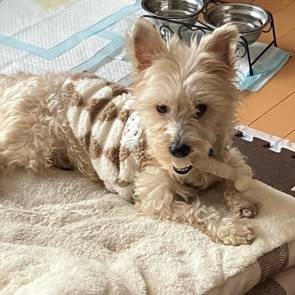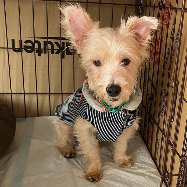 | 特徴(性格など) | 小型Mix犬の男のコです。仮の名前を「バロン」と名付けました。 年齢は、推定1歳。体重は4.4kgです。 ●性格(人に対して) 当初はおとなしく、人にはまだあまり慣れておらず、少し怖がるようなところもありましたが、今では、楽しそうにはっちゃけて走り回っています。だからといって、やんちゃすぎるわけではなく、活発な一面がありますよって感じでしょうか。 ●性格(犬に対して) 特に問題ありません。 ●トイレについて トイレはシーツで完璧です。室内で、座ってする派。足はあげません。 ●フードについて 食欲旺盛です。 ●留守番について イタズラや無駄吠えはありません。ケージやクレートが大嫌いなので、フリーで生活しています。 ●散歩について 練習中です。 ●健康状態 骨格はしっかり。ガッチリしています。足が大きいです。 後肢はパテラ気味ですが、特に痛みはないようです。 尻尾が短く、他の犬に噛みちがられたかもしれません。 右耳と鼻(右側)にキズがあります。右耳はピーンと立っていますが、左耳は先っちょがぴょこんと揺れるくらいにちょこっとだけ曲がっています。 お口は受け口(アンダーショット)気味です。見た目にはわかりません。 フィラリアは陰性。他に健康上の問題はありません。 現在は一時預かりボランティア様宅で過ごしています。 現在の様子はコチラ ⇒https://ameblo.jp/luke-momo1971/ |