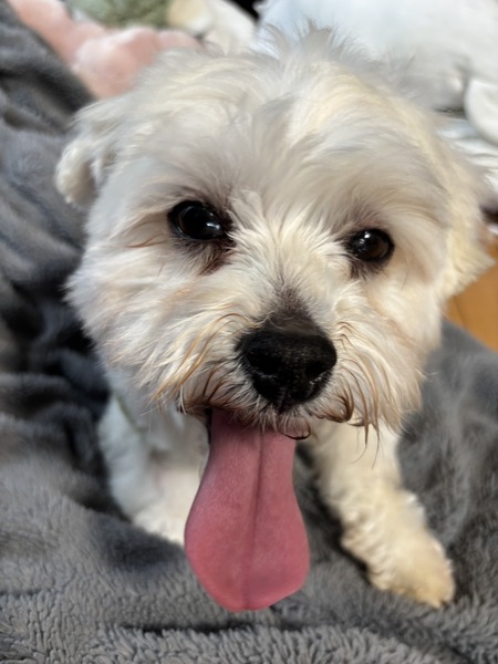 | 特徴(性格など) | 毛色は真っ白。性格は淑女を目指しましたが失敗した、元気いっぱい女子です。元気玉出せそうで、今は舞空術を習得中です!走ってる姿はすでに飛んでます! | ||