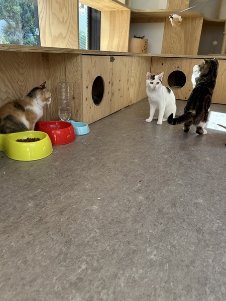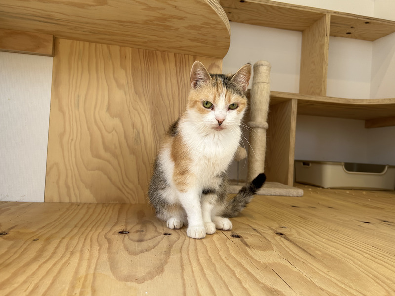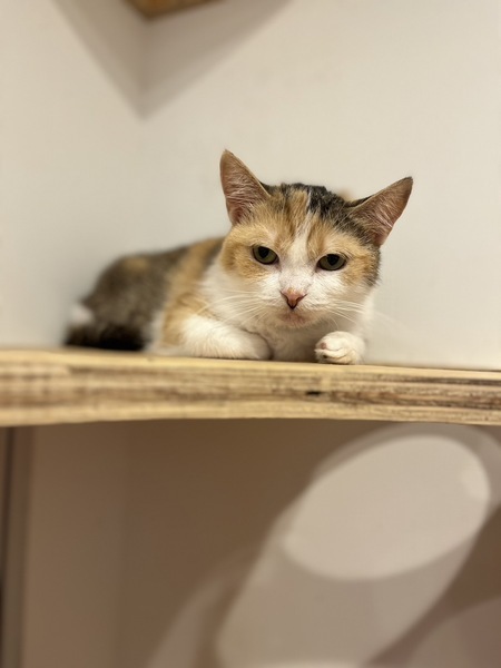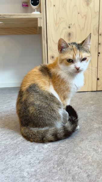 | 特徴(性格など) | たち耳スコティッシュの三毛猫ぺろちぃちゃんです! ぺろちぃという名前は、いつも舌がぺろっと出ているかわいい姿から付けられました のんびり屋さんで日向ぼっこが大好きです よく窓辺の隙間に挟まって日向ぼっこしています! おもちゃ遊びも好きで、他の子達と一緒によく遊んでいます! 体が小さめで、他の大人ねこたちと比べると子猫に見えるサイズ感です。 おっとり美人、穏やかな時間を一緒に過ごせる子です! |