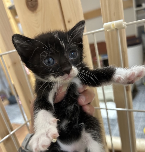 | 特徴(性格など) | 2匹ともそれぞれチャームポイントあり。 髭ちゃんは男の子かな?と思います。 もう1匹の黒白ちゃんも靴下履いてるかのようで、女の子かな?と思います。 まだ小さいため確定ではないです。 |