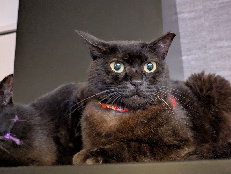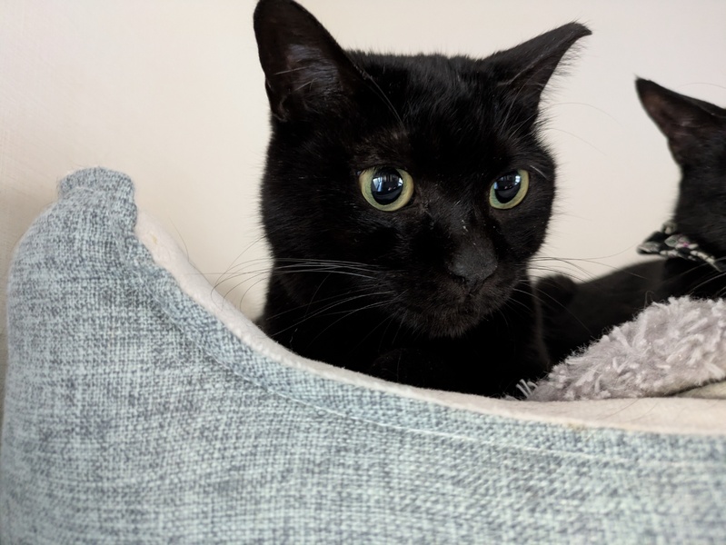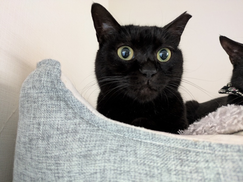 | 特徴(性格など) | 色柄 黒 性格・特徴 ・とても臆病です。 ・慣れるまで隠れます。 ・猫に友好的です。 ・大人しく静かです。 ・つややかな毛質です。 ・尻尾は長く太いです。 ・まんまるおめめ、まんまるボディです ・ちゅーる、ウェットフード大好きです |