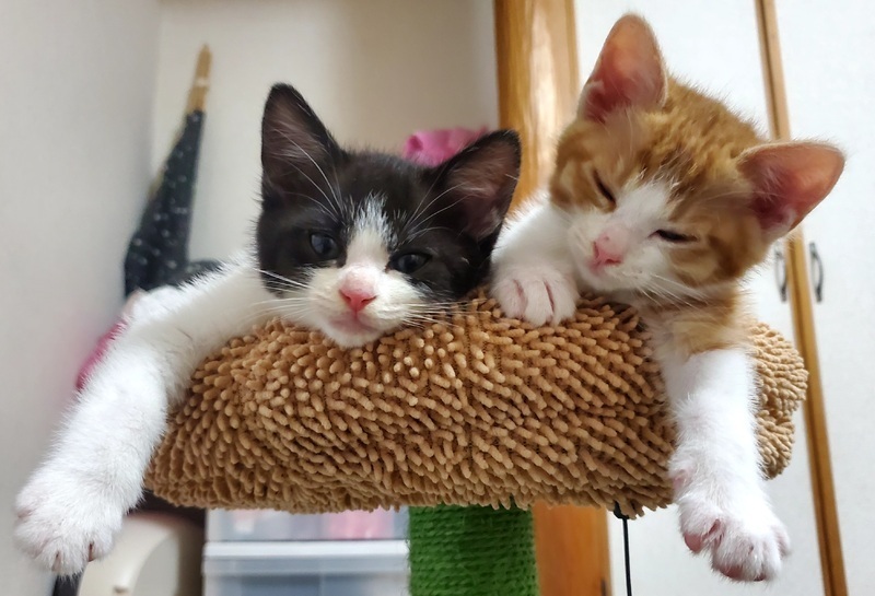 | 特徴(性格など) | 【仮名】納言(なごん) ♂ 【生年月日】2025年5月初旬頃生まれ 【種類】ミックス 【性別】オス 【毛色】レッドタビー&ホワイト 【去勢】未(適齢になり次第飼い主様でお願いします) 【駆虫】済 【ワクチン】未(生後2ヶ月を経過後に接種予定) 【猫エイズ・猫白血病】子猫の為未検査 【健康状態】保護当時、猫風邪をひいていましたが、現在は良くなってきており体調は良好です。よく食べ順調に大きくなっています。 【性格】よく遊び,好奇心旺盛です。人懐っこい性格で,誰にでも「あそんで~」と寄っていきます。 【兄弟】大臣♂ |
