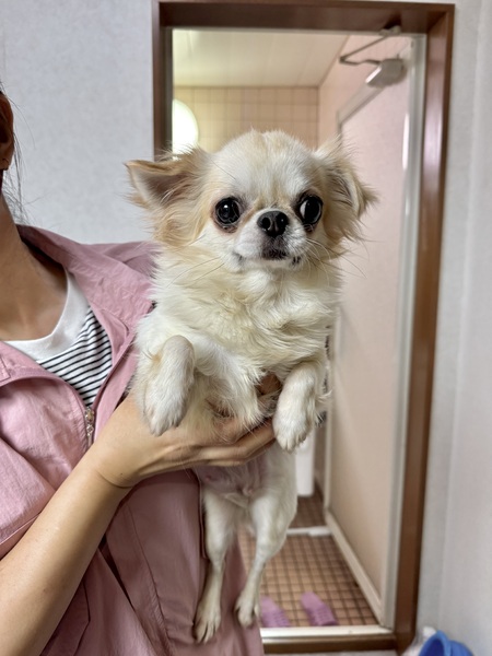 | 特徴(性格など) | 名前(仮): ポム子 性別: メス 犬種: ロングコートチワワ 毛色:ホワイト&レッド 年齢: 2歳 体重: 2.3kg 保護経緯: ブリーダーからの保護 性格:臆病な性格ですが人にはフレンドリーな甘えん坊さんです。犬はあまり好きではないようです。 トイレ: シート認識ありますが、違う所でもしてしまいます。 散歩: お外が怖くて震えているので、抱っこ散歩から始めています。 日常の様子:人のそばに甘えにきます。 それ以外はワンコベッドや部屋の隅っこで静かにしています。 お手入れ:毎日のブラッシング・歯磨き・耳掃除・涙やけケア・定期的なシャンプー・爪切り・肛門絞り・パット処理・トリミングなど ※サマーカットのように被毛を短く切ることはしないでください。 フード:ウェットフードにミシュワン白をまぜています。 保護日: 2025年6月12日 健康状態 フィラリア:陰性 ワクチン:5種混合ワクチン接種済み マイクロチップ:装着済み 避妊・去勢:避妊手術済み その他:触診・聴診・血液検査・検便、異常なし、駆虫薬投与・ノミダニ駆除済み・スケーリング済み 。 |