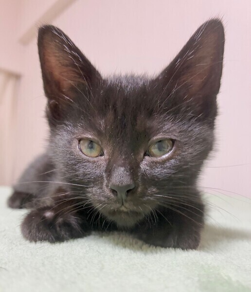 | 特徴(性格など) | 【仮名】ふーちゃん 【性格】スッキリ黒猫のふーちゃん♪ 写真の100倍カワイイ女の子です(笑) このコはわりと自己主張強めで 構って欲しい時、ごはんの時に ぴゃ~ってアピールします(笑) たぶん自分がカワイイの 分かってる系のヤツですね♪ ワンコと同居もだぶんOK? 兄妹や同世代にゃんことの 一緒のお迎えをお願い致します♪ ※1ピキ譲渡応相談 |