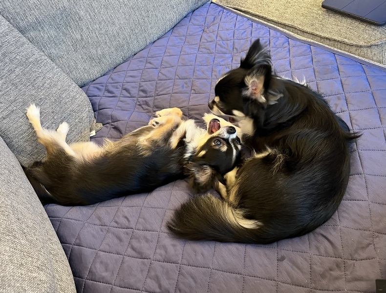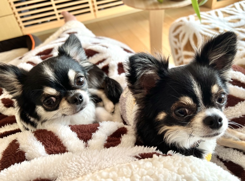 | 特徴(性格など) | 兄弟の様にラブラブで仲良しの兄弟です(別々のブリーダーさんから嫁いだ子達) カイト(ロングコートチワワ:ブラックホワイト)4歳 しおん(ロングコートチワワ:ブラックタンホワイト)3歳半 カイト:とても愛情深く抱っこ好き。 殆ど鳴かない。明るく賢く愛情表現が多め。 しおん:とても愛情深く抱っこ好き。 殆ど鳴かない。優しく賢く愛情表現が控えめ。 一緒に寝るのが好き。 |