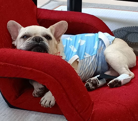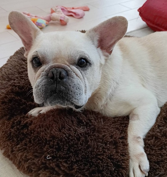 | 特徴(性格など) | フレンチブルドッグ界のイケメン代表、パン君です 6歳 男の子 体重10キロ 人間が大好き、ご飯が大好き! そしてご飯を待ちきれないときの「キュルルンお目目」は、もはや必殺技。 一度見たら最後、あなたの心臓はわしづかみにされるので覚悟してください。 パン:「ご飯を前にしたときの僕の目は、もはや武器です。 曇りなきキラキラお目目で、あなたのハートをわしづかみにします。」 パン君は、人が大好きすぎて、常に「大好きオーラ」が全身からあふれています。 最近は紐やおもちゃで遊ぶ楽しさに目覚め、「なにこれ!楽しい!むむっ、もっとやる!」と、初心者ながら全力で満喫中。 これからもっと遊び上手になる予感しかありません。 右後ろ足には股関節脱臼と変形があり、手術を頑張って乗り越えました。 膝は曲がりませんが、これまで使えなかった足を少しずつ使えるようにリハビリ中です。 歩き方は少し個性的ですが、パン君自身はそんな自分をまったく気にしていません。 おトイレは、トイレシートと、マナーパットで対応中 |