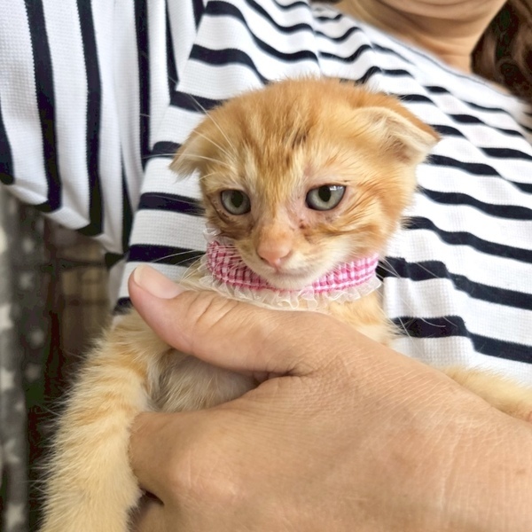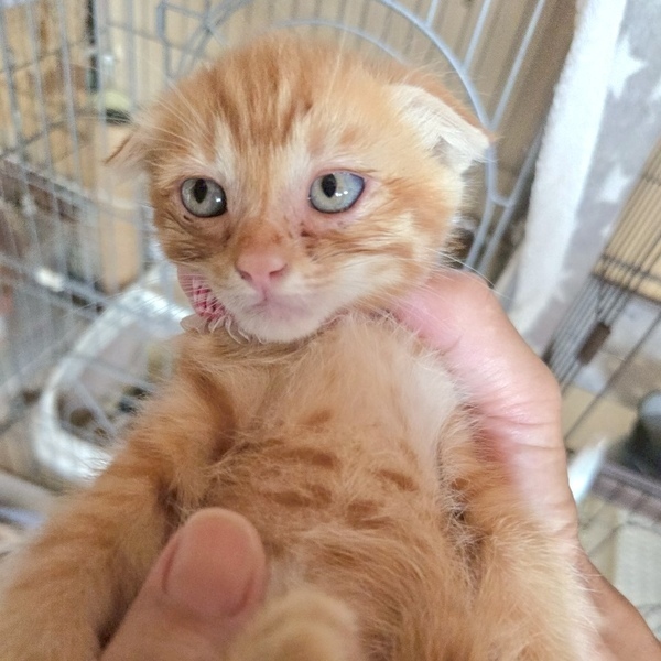 | 特徴(性格など) | 茶トラの子猫、いちとくん。 お母さん猫・きょうだいたちと一緒に保護しました。 (10月25日、最新の写真3枚を追加しました) お母さんも耳が垂れているため、スコティッシュ系と思われます。 お外で生まれた子ですが、だっこさせてくれます。 きょうだいたちと仲良くじゃれあいながら過ごしています。 いちとくんを温かく迎えてくださる方を探しています! 少しでも気になられましたら、お気軽にご連絡くださいね。 |