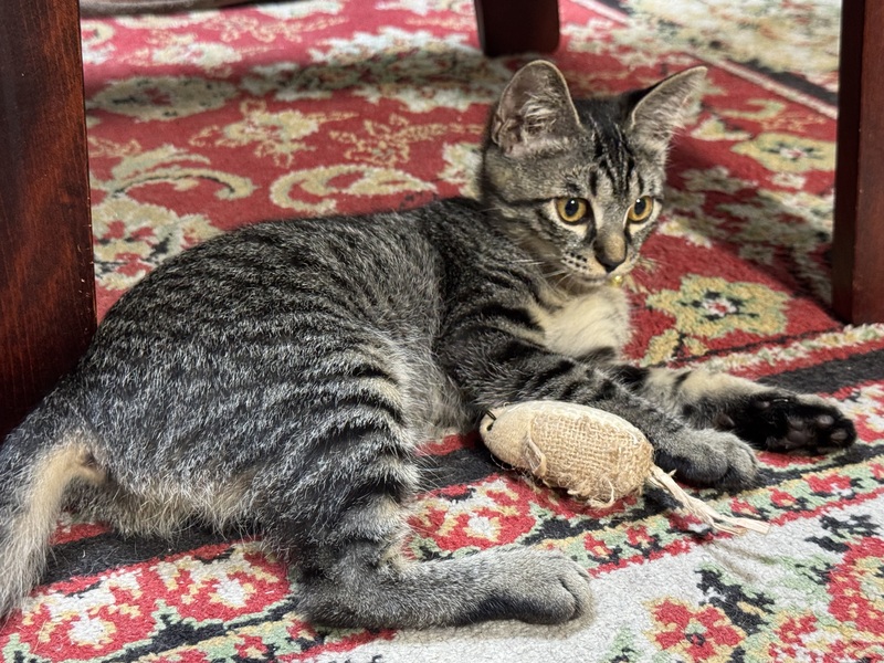 | 特徴(性格など) | キジトラ柄のかわいい女の子です。 ちょっと成長したので、いくつか写真を入れ替えました! 物静かで、鳴き声も小さく、鳴いたか鳴いてないか分からないぐらい小声です。 一方で活発な面もあり、先住さんのお下がりのネズミちゃんを連れ回してずっと遊んでいます。 ちょっと人見知りさんです。知らない人が来ると一旦隠れてしまいますが、15分ほど静かにしていると出てきます。遊びに誘うと遊んでくれます(笑) 尻尾はながーくてまっすぐ。ちょっと黒っぽいのが特徴です。 家族からは「シマちゃん」と呼ばれています。 幸せにしていただける方、ご応募お待ちしています。 シマちゃんの成長具合については、Instagramアカウント @shma_kiji_shima をご確認ください! |