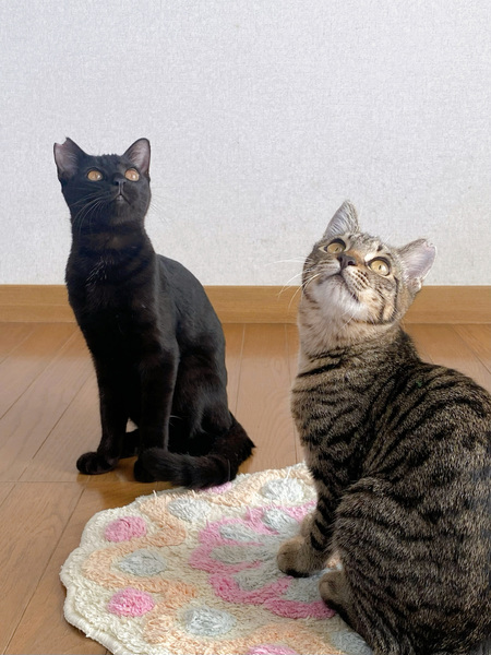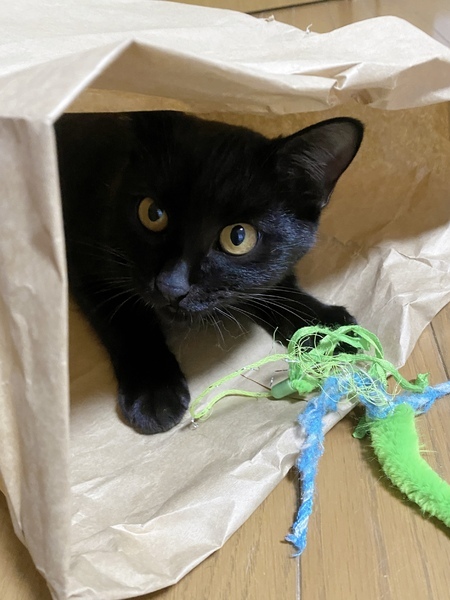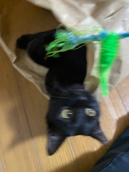 | 特徴(性格など) | 特徴 ・短毛 ・黒猫 ・胸元に白い毛 性格 兄妹の中で1番びびり君で心配しまたが、だいぶ人馴れしました。 撫でようとすると逃げるときもありますが、、。笑 今ではスリスリしてくるまでになりました。 抱っこもできます◎ 遊ぶのが大好きで、姪によく猫じゃらしで遊んでもらってます。 羽系のおもちゃに1番興味があるようで、咥えて唸って持って行こうとします。笑 |