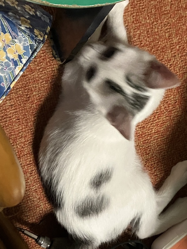 | 特徴(性格など) | 最初は灰白でしたが白黒になってきました… シッポは短いですがサバトラ柄。2段階鍵しっぽです。 ゴロゴロすぐお膝に乗って甘えてくる子です。 が…最近マタタビ入りのネズミのぬいぐるみが気に入ってあまり遊んでくれません… 一番ぽっちゃりしてたから運動するのはいい事にだけど… |