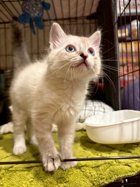 | 特徴(性格など) | ☆名前 このん ☆性別 女の子 ☆年齢 0歳2ヶ月 ☆模様 シャムトラ ☆現在所在地 茨城県神栖市 ☆譲渡対象地域 茨城県 千葉県 東京都 (幼齢の為、移動の負担を考え預かり宅から2時間程度の範囲の方) ☆避妊去勢手術 未 ☆ワクチン 1回目済み ☆エイズFIV 陰性 ☆白血病FeLV 陰性 ☆単身者 不可 ☆高齢者 不可 ☆性格・特徴 ▶︎性格 環境の変化に1番慣れるのが早いです! 兄弟の中で1番ぴょんぴょん活発に動き回って、高いところに登ります! いろんなところに興味を持ってカミカミしちゃうお年頃です ▶︎家の中での様子 このんの兄弟たちといつも一緒に遊んでます!よく追いかけっこして遊んでいますが、体力が無限にあるので元気です♪ トンネルが特に好きでよく中にいます。 ▶︎ご飯 現在は幼齢のため1日五回に分けてご飯をあげています ご飯を作っている時は〝にゃーにゃー”ないてご飯のあるところに登ってきます ▶︎排泄 トイレ○ 遊ぶのが大好きなので、たくさん遊んでくれるご家族を募集しています!! ☆健康状態 良好 ☆体重 835g ☆マイクロチップ装着 未 ☆今後の医療措置 避妊手術 ワクチン2回目 マイクロチップ装着 |
