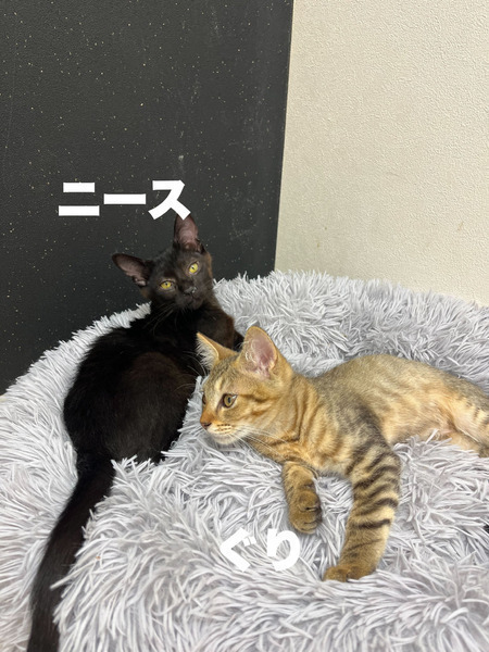 | 特徴(性格など) | 生後3ヶ月のわんぱくな男の子ニースくんです! 兄弟ねこのコナンくんと一緒にねこの森にやってきました。 ニースというお名前はフランスの美しい都市の名前からつけました✨ とにかく遊びたい盛りなお年頃、元気いっぱいの食いしん坊さんです! ニースくんは現在子猫4匹で子猫部屋で過ごしていますが、他の子達とも仲良しで一緒に遊んだりお昼寝したり過ごしています? 健康状態について 現在は猫風邪のため治療中ですが、元気いっぱいです。 追記:現在日中のみ大人たちのいる保護猫室に出てきてます!YouTubeライブ配信で元気な姿が見られるので是非ご覧ください! 当院で健康診断・各種検査(血液・便・エイズ白血病検査)を実施済みで、エイズ白血病検査は陰性です。3種混合ワクチン接種、内外部寄生虫駆除、避妊去勢手術、マイクロチップ装着等は月齢を考慮し、実施可能なタイミングで順次行う予定です。各処置の実施状況については、お問い合わせください。 |