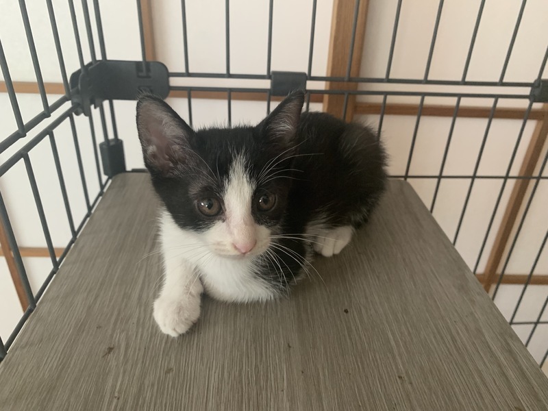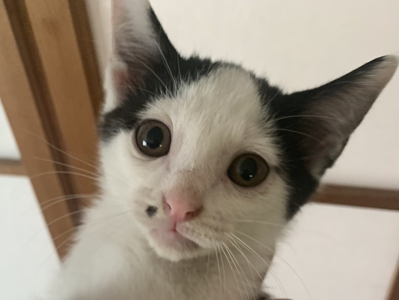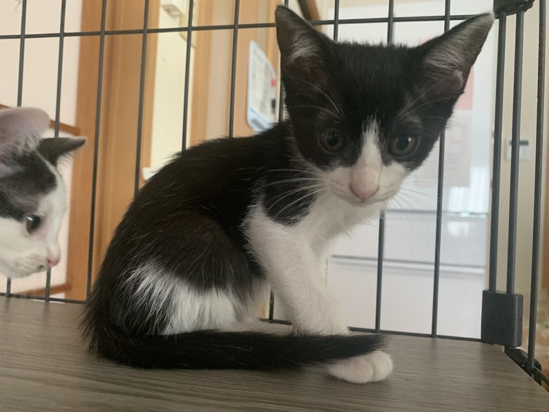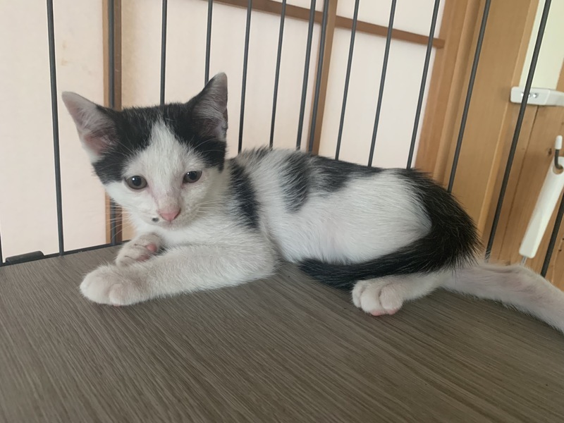 | 特徴(性格など) | 1. 活発なオスのハチワレくん(写真1.2) 2. キュートなメスのハチワレちゃん(写真3.4) 3. 鼻の下ちっちやい模様の白黒おっとりしたオス(写真5.6) |