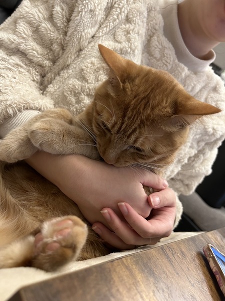 | 特徴(性格など) | とても人懐っこい甘えん坊です。撫でて欲しいとすりすりします。夜は一緒に寝ます。(部屋を分けることも可能)何事にも物怖じせず、明るい性格です。 | ||