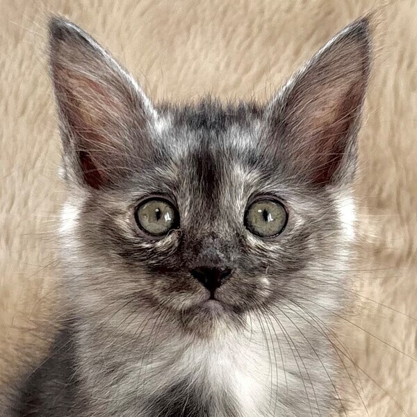 | 特徴(性格など) | 【仮名】ミントちゃん 【性格】パヤパヤ長毛のミントちゃん♪ この柄はなんていうんでしょうか? 基本サビなんでしょうけど シルバーの毛並みでかなりレアです♪ 基本的には甘えッコなんですが わりとおてんばちゃんカモ? おもちゃを振ると疾風のごとく現れ すごいスピードで飛び回ります! その時爽やかな風が吹きますよ(笑) 兄妹のポップくんとウマが合うようで ペアでのお迎えを希望します♪ ※1ピキ譲渡不可 |