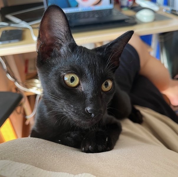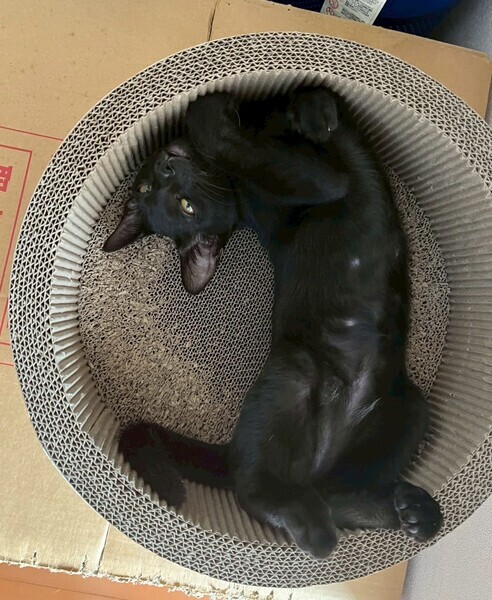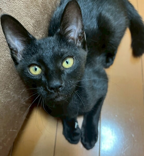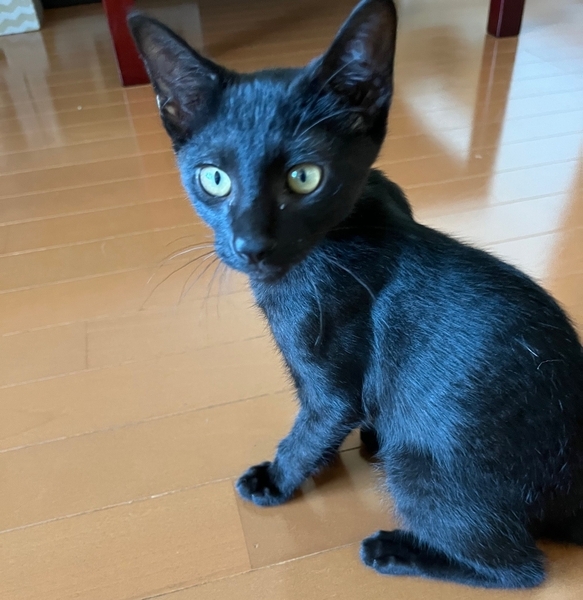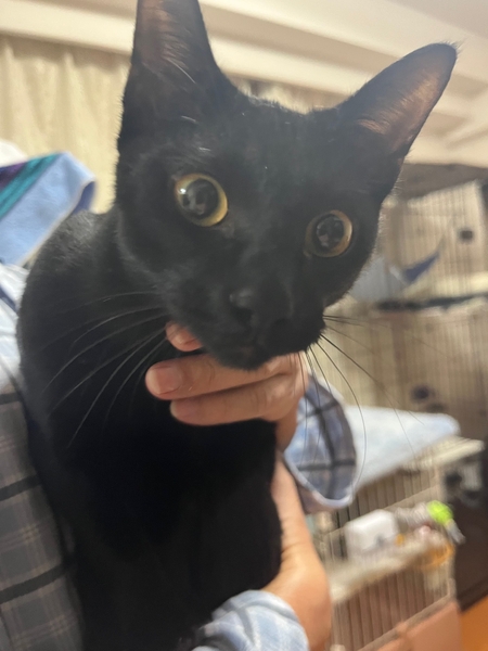 | 特徴(性格など) | 2025.3.24生まれ(推定) 毛色:黒 真っ黒の格好いい、元気いっぱいの男の子です。 預かり2日目から膝の上、体の上に乗ってくるほど人が大好きです。 好奇心旺盛で何にでも興味を持ちます。 最近は仮ママさんのお腹の上がお気に入りです。 ちょっと面白い鳴き声でご飯を要求してきます。 いつも兄弟の伊佐次郎とじゃれ合い、追いかけっこをしています。 |