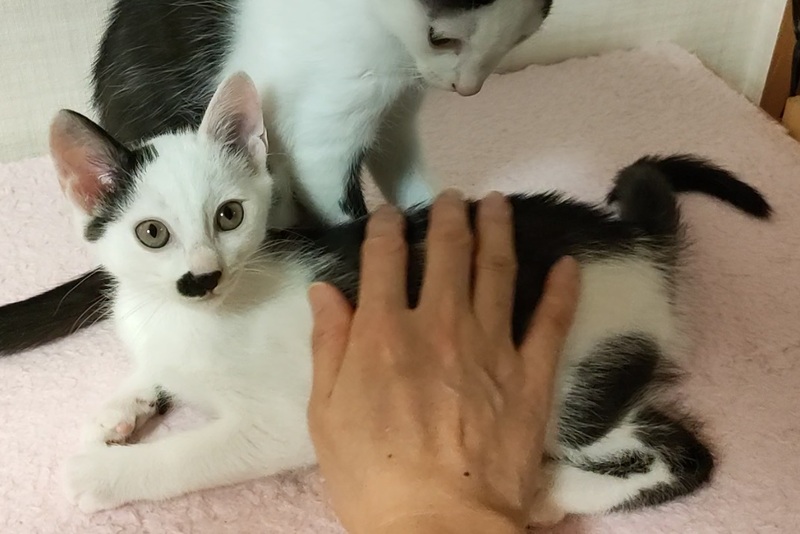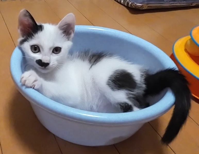| 特徴(性格など) | おひげみたいなお顔の柄がポイントです。 姉妹の中で一番小柄です。 食欲はあります。チュールの匂いがすると飛んできます。 小柄ですが活発でよく遊びます。 たくさん遊んで、たくさん寝ます 母猫はすごく小柄なので、大人になってもそれほど大きくならないと思います。 (10月14日追記) 新しい動画をupしました。よかったら見てください! https://youtu.be/-rFxVj4fKOI (10月8日追加動画↓) https://youtu.be/iFtNV_rfEYs?si=GkYVPDm4XR0SCS0x (10月5日追記) ご飯は離乳食(ウェットフード)を卒業して子猫用のカリカリを食べています。 トイレの失敗はありません。 体重は1kg前後。ノミ・ダニ駆除済み。猫風邪治療済み。獣医さんと相談してワクチンは10月中旬くらいに予定しています。ウィルス検査は未実行です。 |