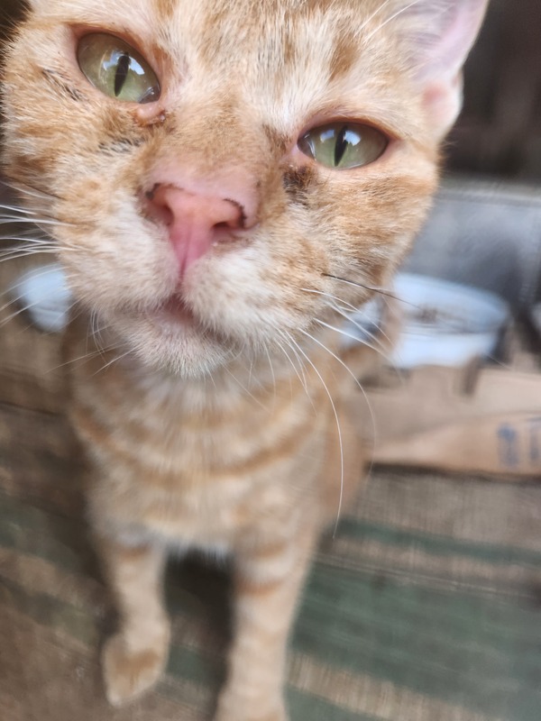 | 特徴(性格など) | 茶トラで小さい子です。 やんちゃです。 だいたい1歳ちょっとだと思います。 |
