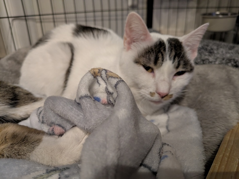 | 特徴(性格など) | 色柄 白×黒 性格・特徴 ・一度譲渡したのですが飼養不適者の為戻ってきました ・脱走の経験があり性格が変わりました ・神経質です ・臆病です ・新しい環境の変化は苦手です ・大人しく静かですがケージは嫌いで入ってる時はなきます ・しっぽは長いです ・外を眺めるのが好きです ・食欲に波があります ・好き嫌いが激しいです ・基本的には猫は大丈夫ですがはじめましては苦手のようです。慣れるまでは威嚇します。 ・隠れがちです ・脱走に注意してください ・今は人間不信ですが譲渡前は少し触れるくらいでした |