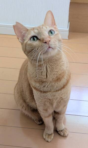 | 特徴(性格など) | スラッとした手足、柔らかな毛並み、キリッとした顔の美形男子です。 食いしん坊で猫じゃらしで遊ぶのが大好きです。 ご機嫌な時は人の近くでスリスリゴロゴロしてます。 食いしん坊で可愛い声で「アーン」とおやつの催促します。 ツンデレのところが魅力的です。 ワンちゃんと暮らせます。 |