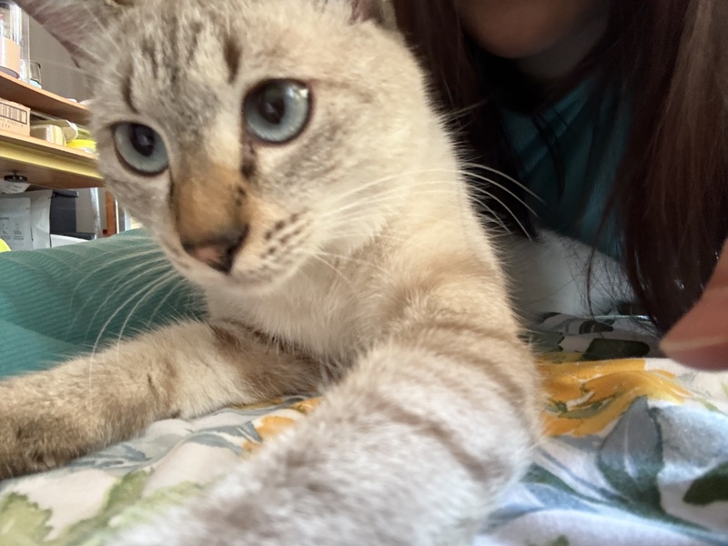 | 特徴(性格など) | シャム風MIX ベージュ〜グレージュの美しいカラー 綺麗な青い目が特徴です メス猫らしく1人でいたい時もあれば 構ってほしくてそっと寄って来てスリスリすることも 遊ぶのは大好き 夢中になっておもちゃを追いかけます 他の猫にもとても優しい子ですぐに仲良くなります まだまだ元気いっぱいの活発なこなので 先住猫がいるご家庭の場合には同じようなこだと相性が良いです |
