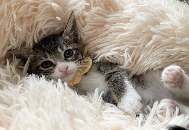 | 特徴(性格など) | ☆☆☆ご希望の方は、以下のアンケートフォームにご記入の上、送信してください☆☆☆ ねこ親希望アンケート→ http://chibawan.net/contactform_cat 【猫No】3992 【愛称】ゆっけ 【性別】オス 【年齢】推定6週(25/09/17頃生) 【毛色】キジ白・真っ直ぐの長しっぽ 【体重】510g 【状態】ノミダニ駆除済、駆虫済、ワクチン1回接種済(25/10/27)、血液検査済(猫エイズ・白血病共に陰性) 【保護場所】野田市 【日記】http://instagram.com/kemikemi1206 【経緯】柏市動物愛護ふれあいセンターより引き出しました。 【性格】ぱっちりとつぶらな瞳と大きなお耳が印象的な、美しいキジ白の男の子です。 性格は元気で活発、兄妹ににゃんプロを仕掛けたり、追いかけっこで走り回ったり、身体を使う遊びが大好きで、息を切らしてダイナミックに遊びます。 運動神経抜群、将来はヤンチャ坊主に育ちそうです。 食欲旺盛で食べるのも早く、食べ終わるとすかさず他の子のお皿を狙いにいきますので監督が必要です。 今は人間に甘えるよりも遊ぶ方に忙しいみたいですが、抱き上げれば喉をコロコロ鳴らして喜び、遊び疲れるとお膝でウトウトしてしまいます。 たくさん遊んでパタッと眠る子猫らしい子猫ですので、猫との暮らしが初めての方にもお勧めです。 遊び盛りの子猫ですので、遊び相手となってくれそうな先住猫さんがいるか、兄妹一緒に迎えて下さるご家庭を希望します。 育ち盛りのゆっけの日々の様子や、育児日記の悲喜こもごもなどをインスタグラムに毎日アップしています。 子猫との生活がどんなものか、また、ゆっけの性格なども垣間見えると思いますので、ぜひご覧下さい。 【その他】完全室内飼育で終生愛情を持ってゆっけと暮らしていただける方、脱走対策を労を惜しまず入念に施して下さる方、定期的なワクチン接種や、その時々において必要な医療処置等の健康管理を約束していただける方からのお問い合わせをお待ちしております。 可愛いゆっけに会いに、預かり宅までいらして下さい! ※ 大変申し訳ないのですが、猫が幼齢のため、55歳以上の方からのお申し込みはお断りする場合がございます。 ※ 猫との暮らしが初めてのお子さまには、アレルギー検査をお勧めしております。(短時間猫と触れ合った経験だけではアレルギーの有無はわかりません) 責任ある終生飼育には必要なことですので、ご理解下さいませ。 ※ お届けは、去勢手術・マイクロチップ装着などの医療処置が終わってからを予定しています(11月下旬に手術を受ける予定です) |
