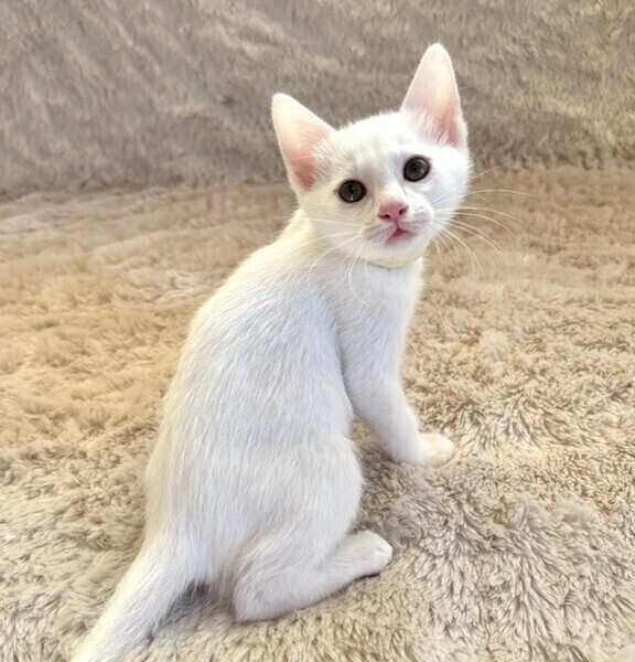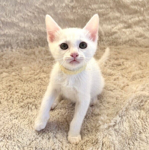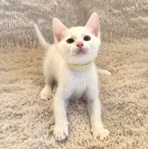 | 特徴(性格など) | 【仮名】ぴょうちゃん 【性格】ビューティーホワイトのぴょうちゃん♪ 仮名は健康に成長して欲しい想いから 厄災を撃ち払う九字護身法です! 乳飲み子から愛情たっぷり育てたので 文句なしのベタ馴れにゃんこです♪ 里親さん先にいったその日から 一緒に寝れること間違いなしです♪ 遊びモードの時はミサイルですので 宅内での交通事故にご注意ください(笑) 遊びの相性を考慮して黒猫しゃあくんと ペアでのお迎えをお願いします♪ ※1ピキ譲渡不可 |