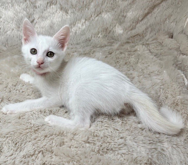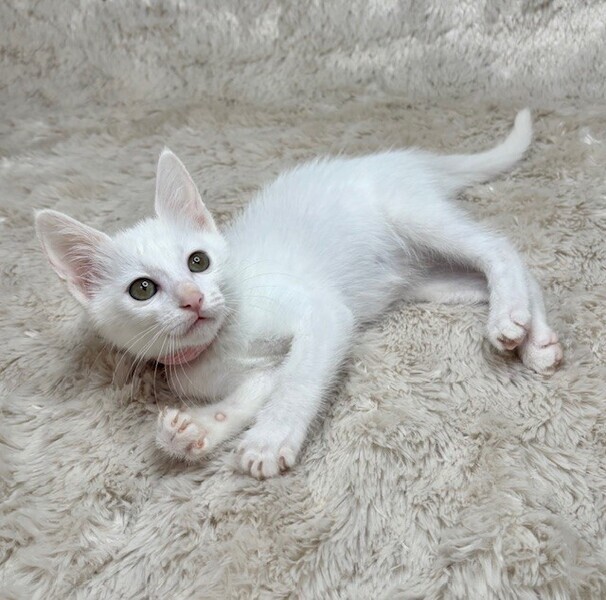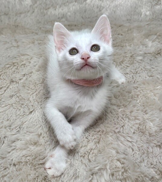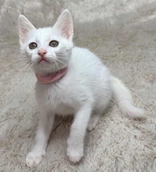 | 特徴(性格など) | 【仮名】りんちゃん 【性格】ピュアホワイトが眩しいりんちゃん♪ 仮名は健康に成長して欲しい想いから 厄災を撃ち払う九字護身法です! 乳飲み子から愛情たっぷり育てたので 文句なしのベタ馴れにゃんこです♪ 里親さん先にいったその日から 一緒に寝れること間違いなしです♪ 遊びモードの時はミサイルですので 宅内での交通事故にご注意ください(笑) 遊びの相性を考慮して黒猫のとうくんと ペアでのお迎えをお願いします♪ ※1ピキ譲渡不可 |