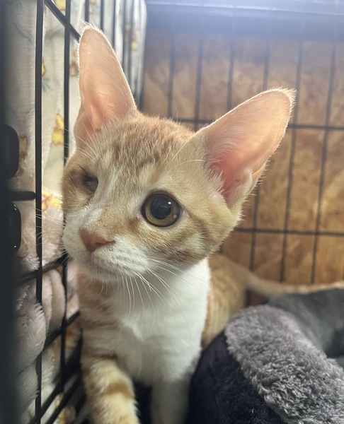 | 特徴(性格など) | 猫風邪の後遺症で右目は見えませんが、とても元気な茶白の女の子です。 よく慣れていて、よくゴロゴロと大きめに言います。 爪切りも平気です。 尻尾がピンと長いです。 血液検査:エイズ(−)、白血病(−) |