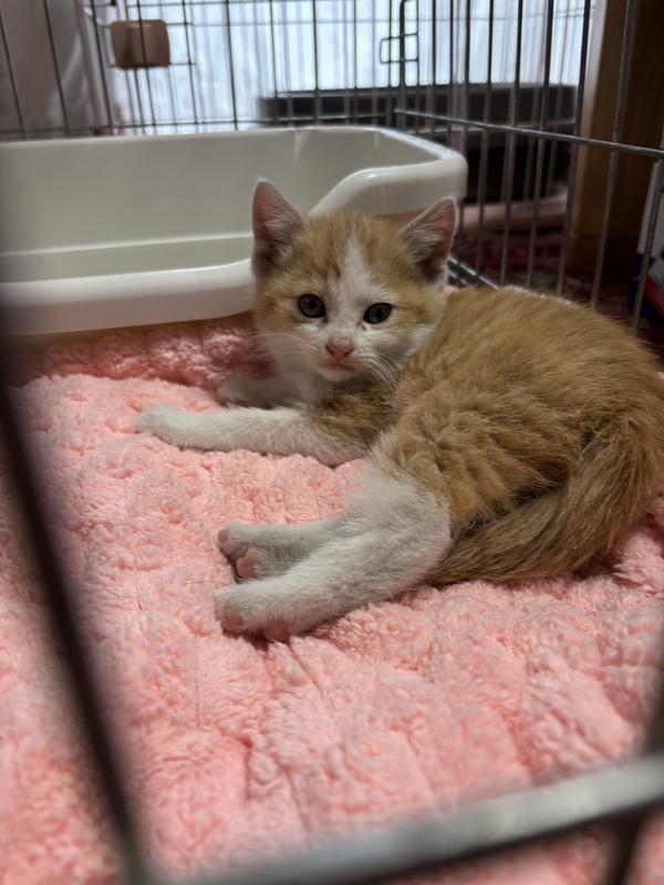 | 特徴(性格など) | 茶白の可愛い子です。甘えん坊さんです。 足が短い様な感じです。 尻尾真っ直ぐです。 ふっくらしてます。 推定生後2ヶ月半から3ヶ月ぐらいかと思います。 |