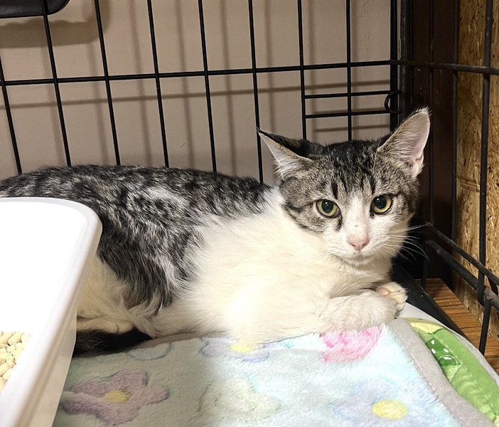 | 特徴(性格など) | 白地にトラのハチワレ おとなしく、ほとんど鳴かない猫です。 |