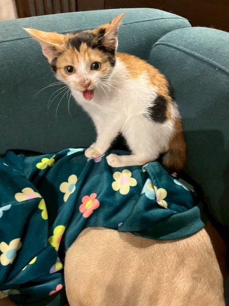| 特徴(性格など) | ちいちゃくて可愛い三毛猫のヨサノちゃんです。環境に慣れるまでは薄くシャーしますがそれがまた可愛いです。 三毛子猫2959 10/15、3種混合ワクチン接種済み、ノミダニ駆除お腹の駆虫済み、エイズ白血病陰性、 マイクロチップ済み。 |