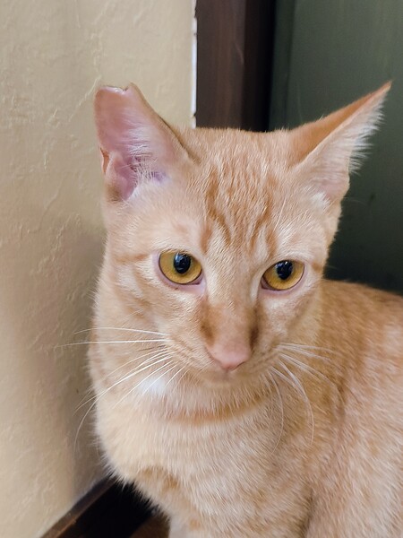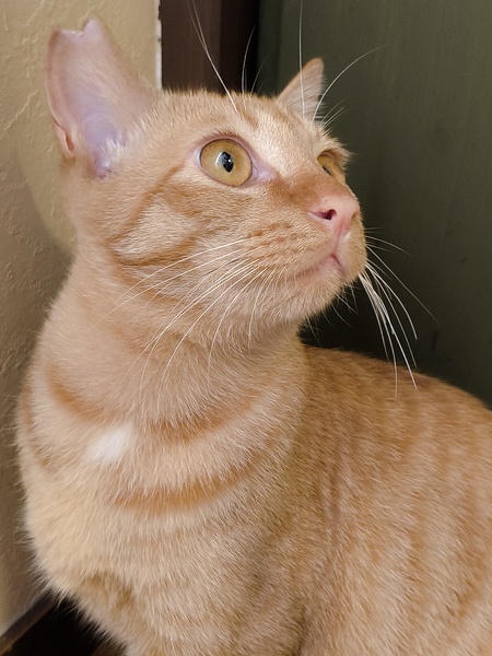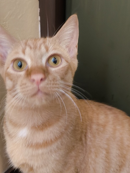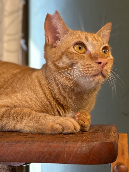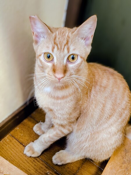 | 特徴(性格など) | 茶色のくりくりの瞳が印象的で、穏やかな甘えん坊な子です。 好奇心が旺盛で、人にも猫にもフレンドリーで、食事の時間も食べるよりくっついてくる方が好きな子です。 母猫、兄弟猫、他の保護猫と一緒に、穏やかに成長しました。 |