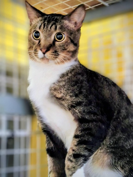 | 特徴(性格など) | 保護された当時は警戒心が強かったですが、驚くほど早く人馴れしました。 食いしん坊で他の猫にもフレンドリーな子です。身体は大きいですが、甘えん坊タイプです。穏やかな子ですので、育てやすいと思います。 クリクリの目が印象的なキジシロの男の子です。 年齢は推定になります。 |
