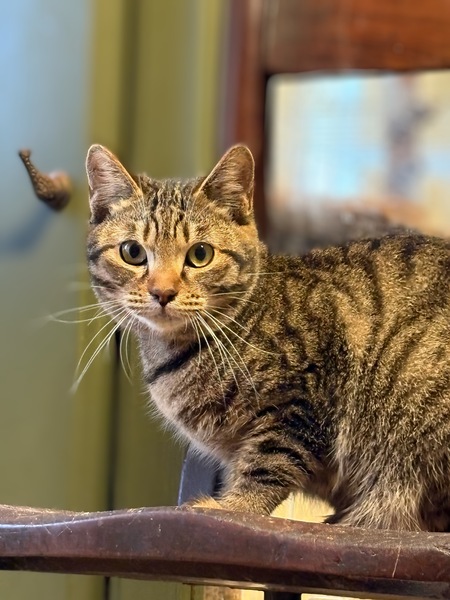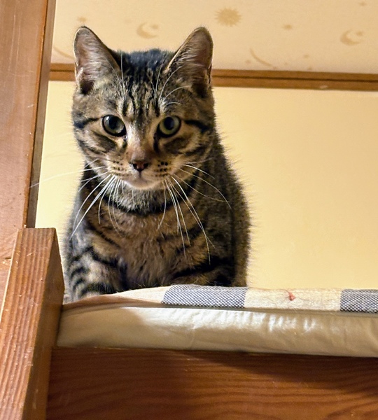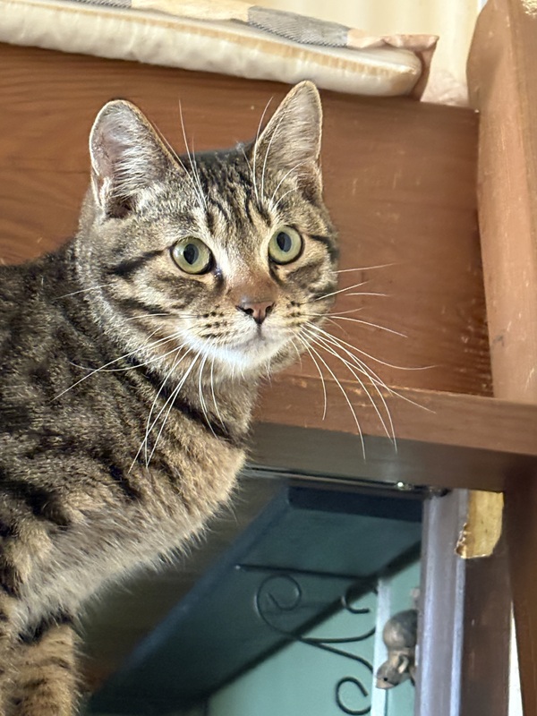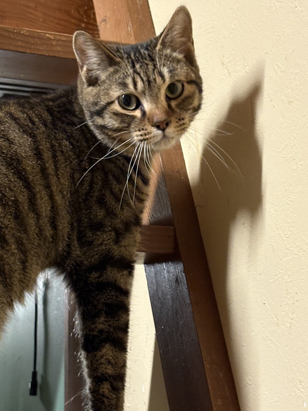 | 特徴(性格など) | どちらかといえば、丸い感じの体型の男の子です。リトルとは兄弟になります。 リトルやお母さん猫、他の保護猫と仲良く過ごしています。人にも少しずつ馴れてきました。好奇心も出てきて、他の保護猫の後をついて、キャットタワーに上ったりしています。 |