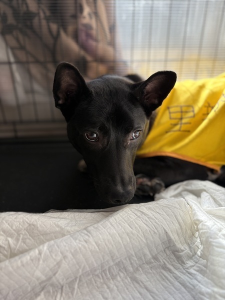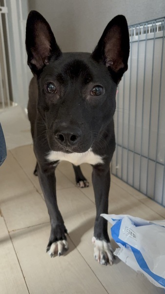 | 特徴(性格など) | 真っ暗で胸元と足先が白。 とても怖がりなので、向き合ってくれるお家を探してます。 他犬、猫問題なし。 威嚇一切無しでおとなしく、無駄吠え無し。 おしっこはシート率ほぼ100%。 |