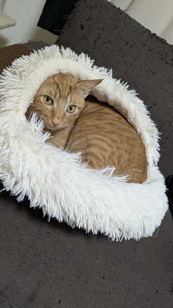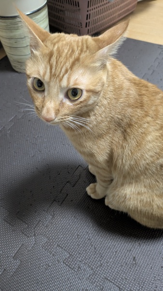 | 特徴(性格など) | きれいなお顔の茶トラ君です。 おしゃべりが大好きで会話のように話したりします。 おもちゃで遊ぶのをおねだりしにきたり 寂しがり屋でかまってちゃんです。 ゴロゴロ甘えてるときに抱っこすると チュッチュッとお乳を吸う仕草を見せてくれる とても可愛い子です。 |