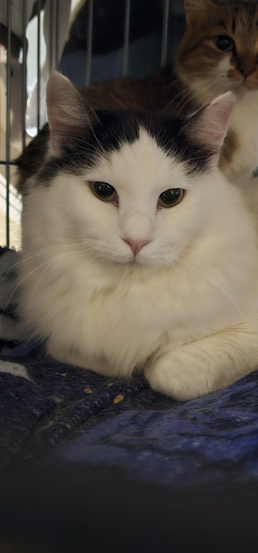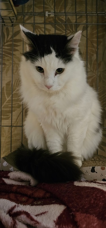 | 特徴(性格など) | ハチワレ白黒長毛(しっぽは黒) すごくビビりですが、パートナーのメスと一緒にいると落ち着いて過ごせます。人馴れもすぐだと思います。攻撃性なし。4.7キロ。検査陰性。 |