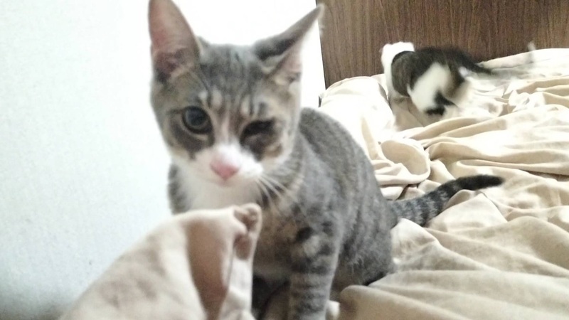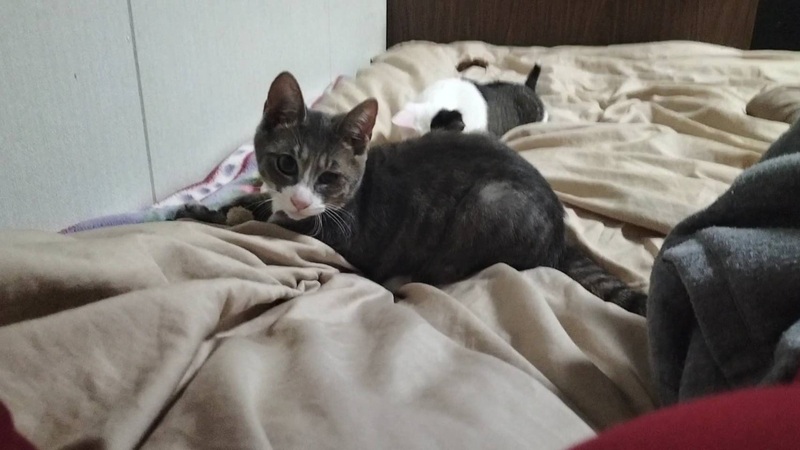 | 特徴(性格など) | 【色柄】キジトラ(キジシロ) 【性格】慎重な性格 慣れると人懐っこい 遊ぶの好き *現在片目の治療中です。 |