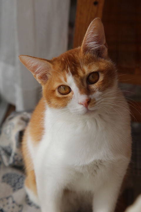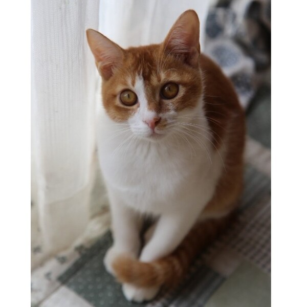 | 特徴(性格など) | 人に甘えることがやっと楽しくなってきたキットです。 甘えたいときには(特にご飯前)撫でるとゴロゴロ言いながら喜びます。が、突然「ハッ!」と我に返ったかのように引きます。まだビビりん坊も健在です。もしかしたらデレデレばかりの超甘えん坊にはならないのかもしれませんが伸びしろはいっぱいです!そんなキットを丸っと受け入れて少しずつ成長する過程を見守りつつ楽しんでいただけたら嬉しいです♪ 元気で活発な男の子です!兄弟とのニャンプロレスや追いかけっこは楽しそうに生き生きとしています。おもちゃも大好きで鈴入りボールでの一人遊びも得意です。ドタバタと楽しそうに遊びますが、途中誰かに横取りされても譲ってあげる優しい性格です。 くっきりとした茶色多めの茶白模様です。しっぽは長くてシマシマ♡目が大きくてはっきりとした顔立ちのイケニャンだと思います。今はまだ痩せ気味体型ですが、これから縦にも横にも大きくなるでしょう。 猫は環境の変化がとても苦手です。新しい環境に慣れるまで少し時間が必要になるかと思います。彼のペースに合わせて大らかに見守ってくださるご家族様を希望します。 |
