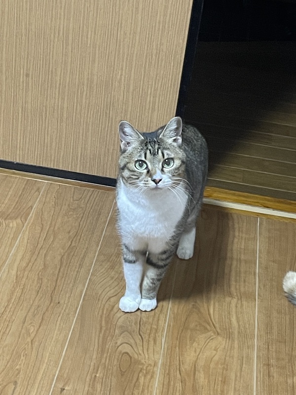 | 特徴(性格など) | 元気なサバ白の女の子です。 おもちゃで遊ぶのが大好きで、猫じゃらしにすぐ飛びついてきます。 撫でられるのも大好きで、手を構えるだけで嬉しそうに近寄ってきます。 名前:ミヤヲ |
