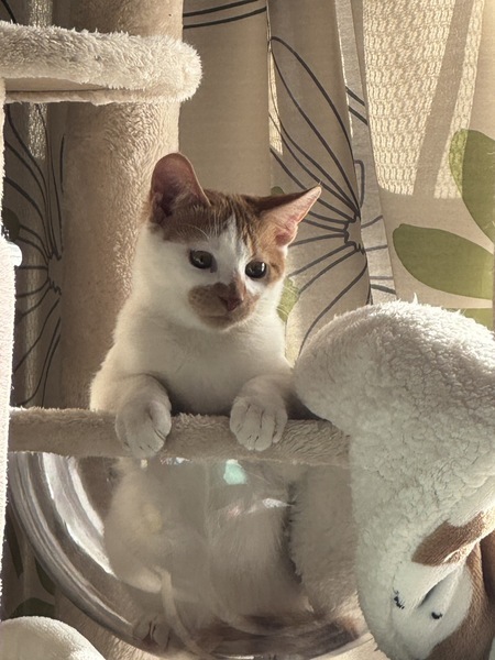 | 特徴(性格など) | 茶白の猫さん、お口の周りも茶色です 甘えん坊 かまちょ スリスリ止まりません 男の子だからか?女性が大好きです 大きな物音にはビビります? 何でも食べます(カリカリはキャットスマックが好き、ウェットフードは魚づくし・カルカンが好きです) 先住猫さんがいらっしゃるなら、少しずつ慣れさせてもらえれば。 |