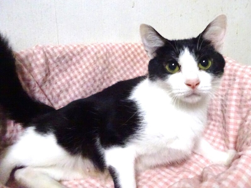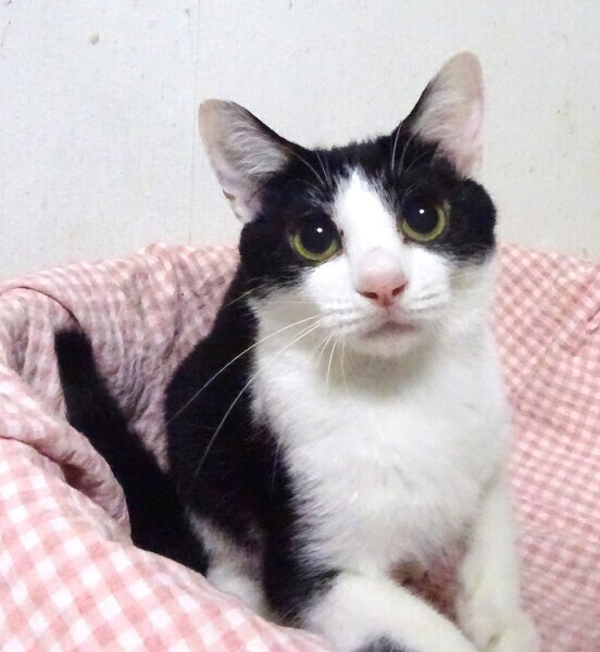 | 特徴(性格など) | 仮名: 美香ちゃん、メス 毛色: 白黒八割れ、尻尾長い 性格: 保護より間もないのに抱っこ出来ます。 人をみると寄ってきたり呼んだりしてくれます。 短期間で人馴れしてきているので、これからもっと馴れて甘えん坊になる感じです。 保護時より威嚇はなく、落ち着いた大人しい子に思えます。 他猫と一緒にいた事から、上手くつきあえると思います。 今は一緒に保護し、よく似ている由香ちゃんと血縁だと思うので一緒にケージに入れたところ、同じベッドに寝ていますので、やはり姉妹か、いとこかなのかと思います。 これから家猫修業に入りますので、ゆっくりと馴らしてくださるご家庭を希望致します。 お届けは千葉県内で千葉市幕張から車で1時間位でお願いします。 |
